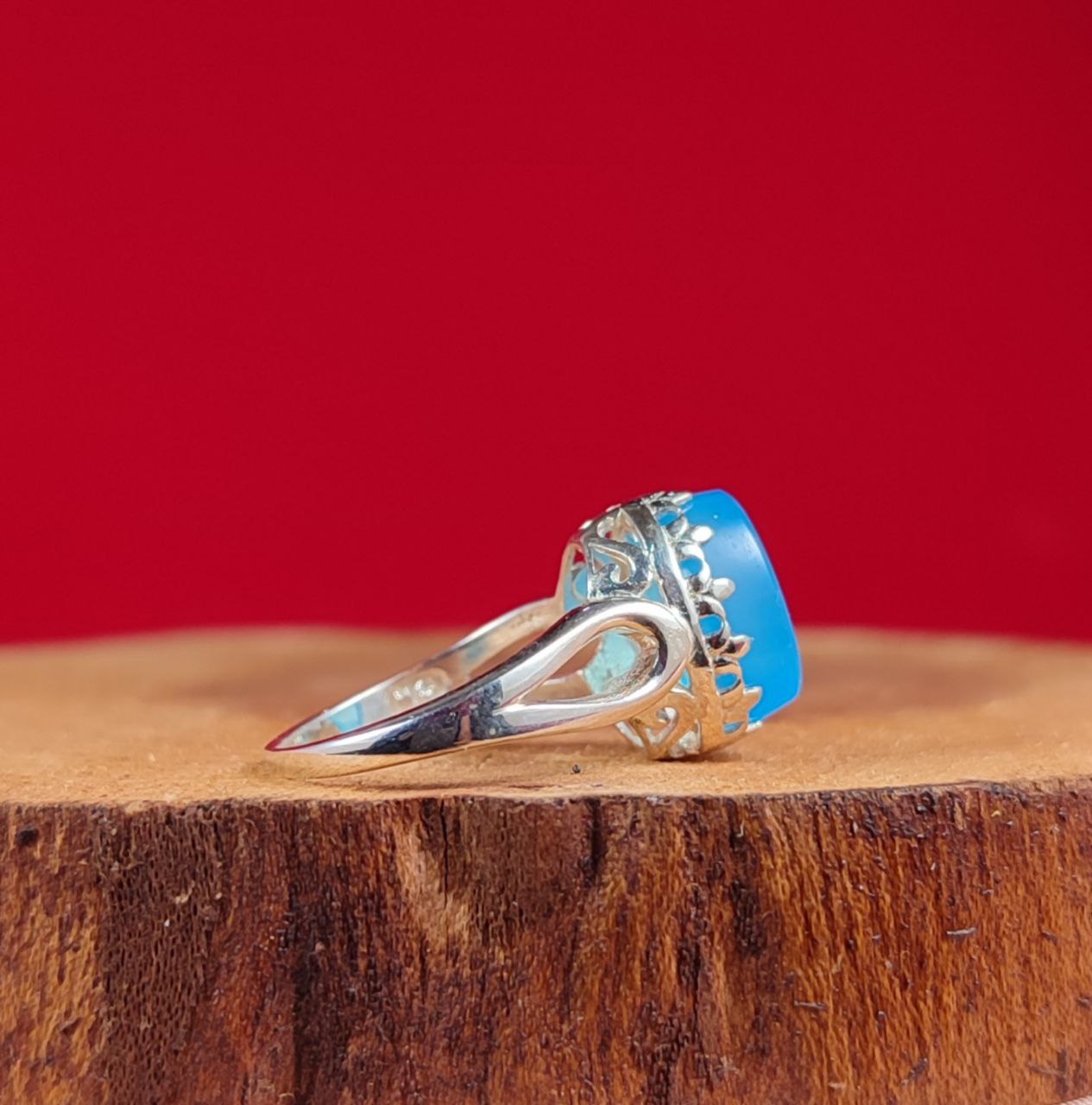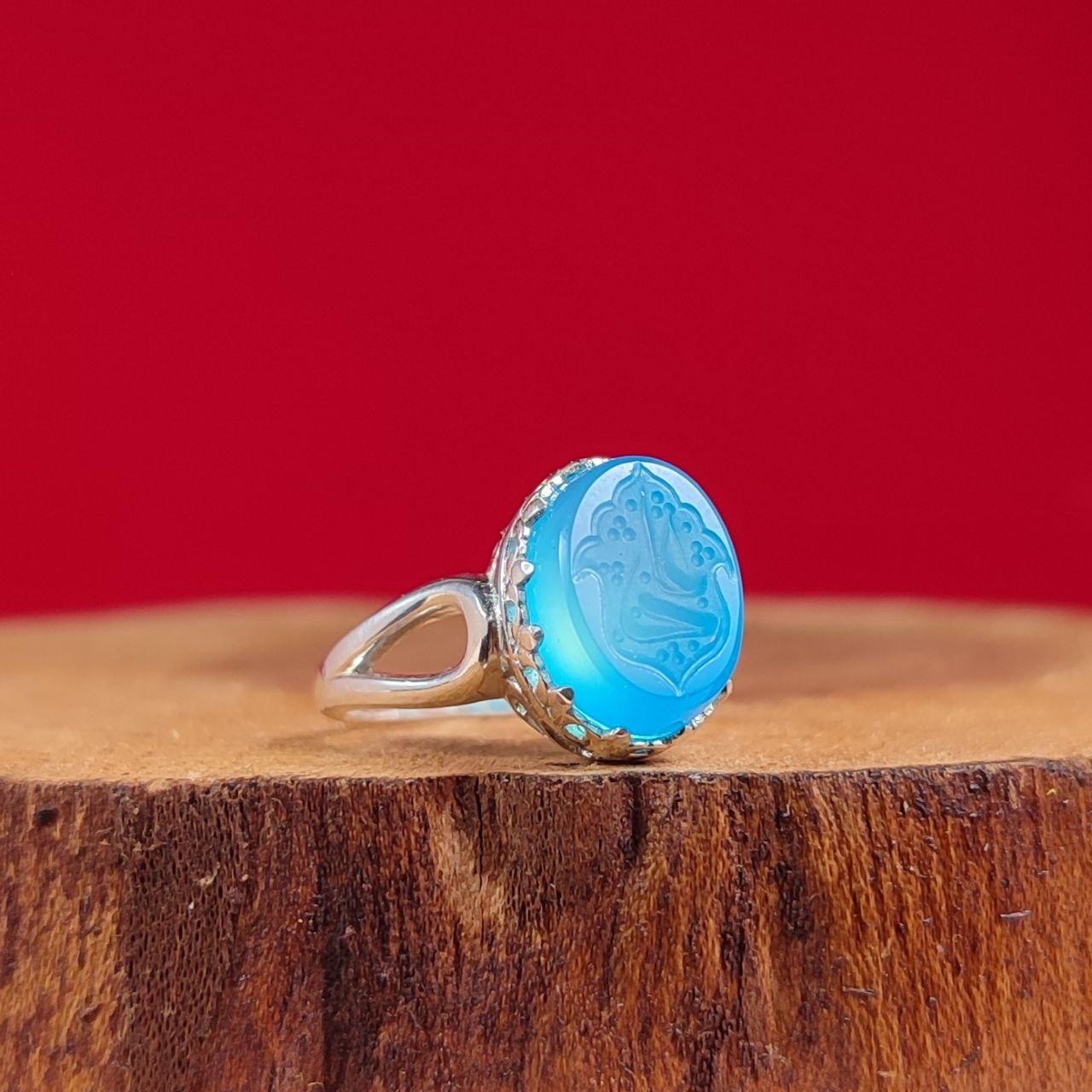 انگشتر نقره زنانه عقیق آبی حکاکی علی