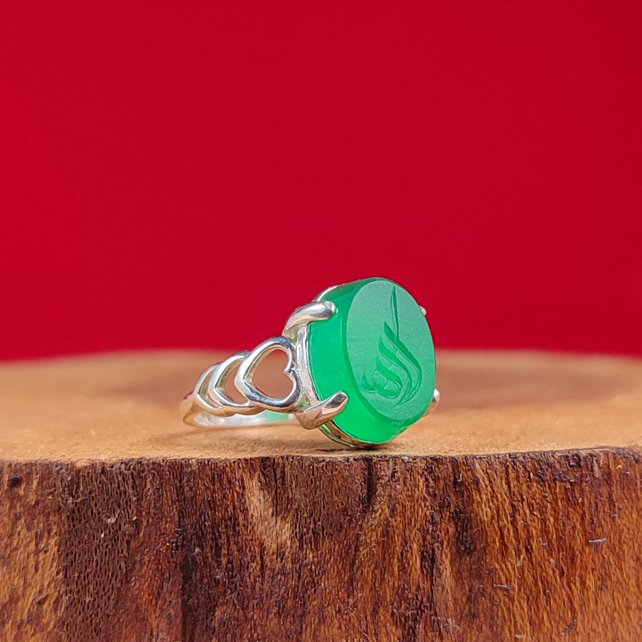 انگشتر نقره زنانه عقیق سبز حکاکی زهرا