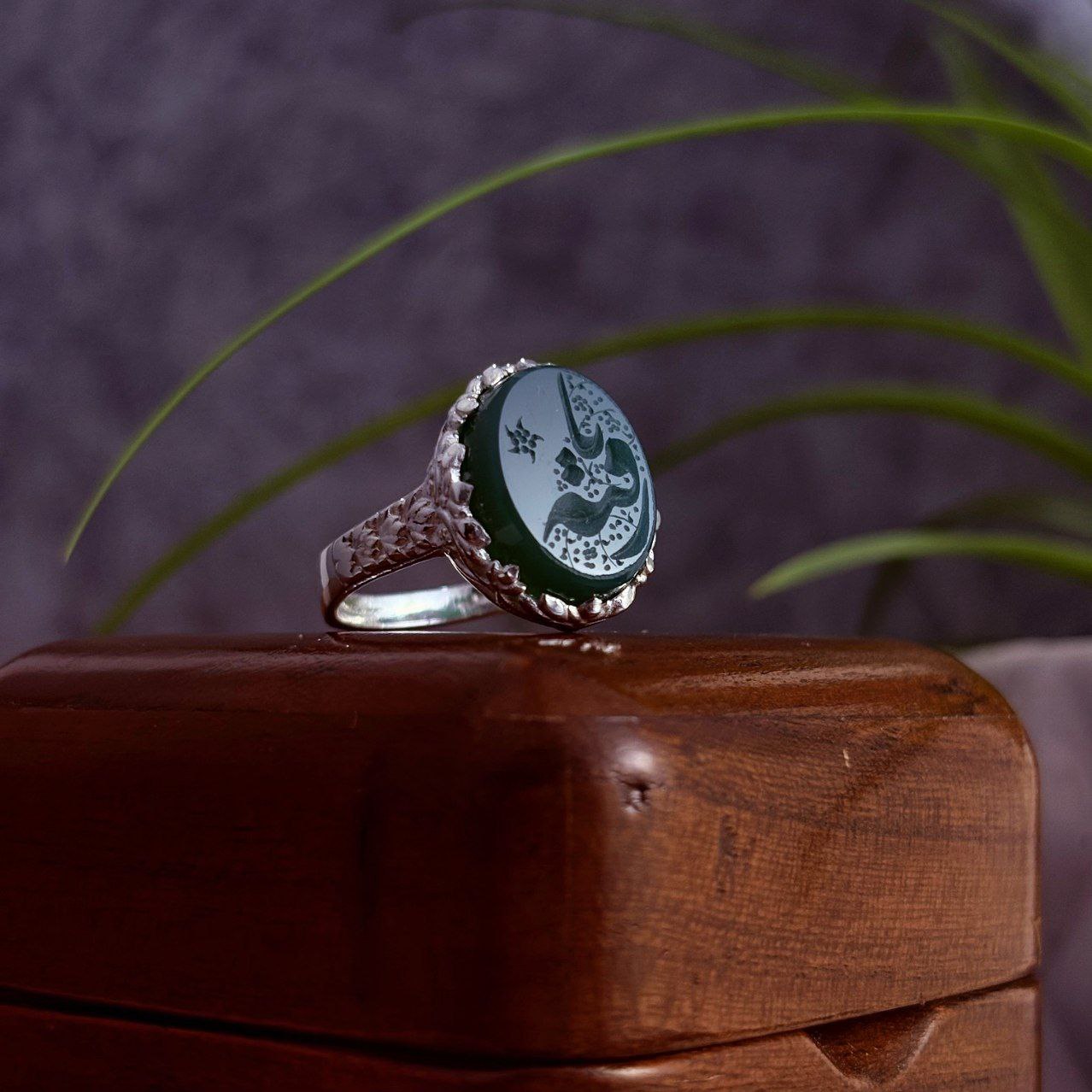 انگشتر نقره زنانه عقیق سبز حکاکی یا حیدر