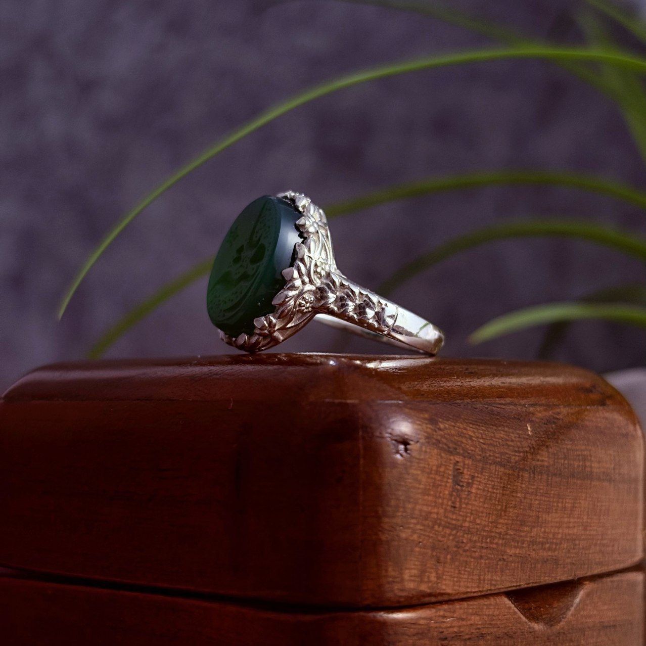 انگشتر نقره زنانه عقیق سبز حکاکی یا رقیه