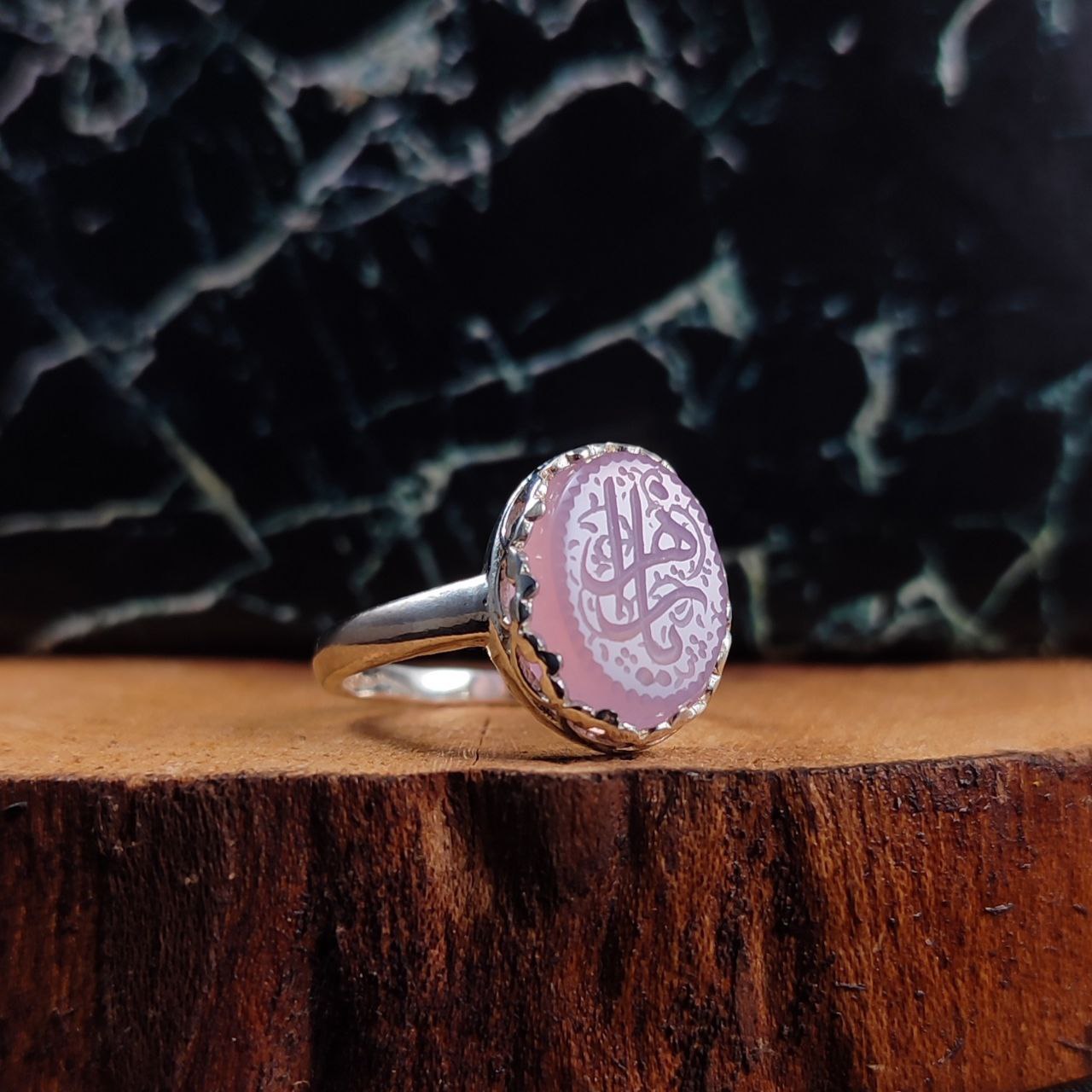 انگشتر نقره زنانه عقیق یخی حکاکی یا فاطمه الزهرا