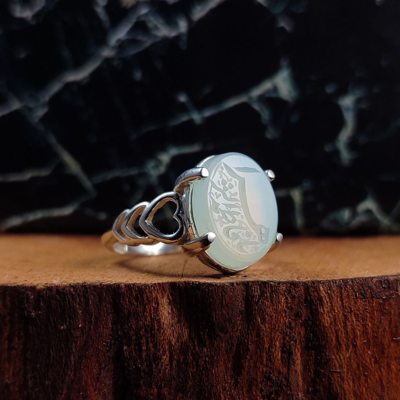 انگشتر نقره زنانه عقیق یخی حکاکی یا فاطمه الزهرا
