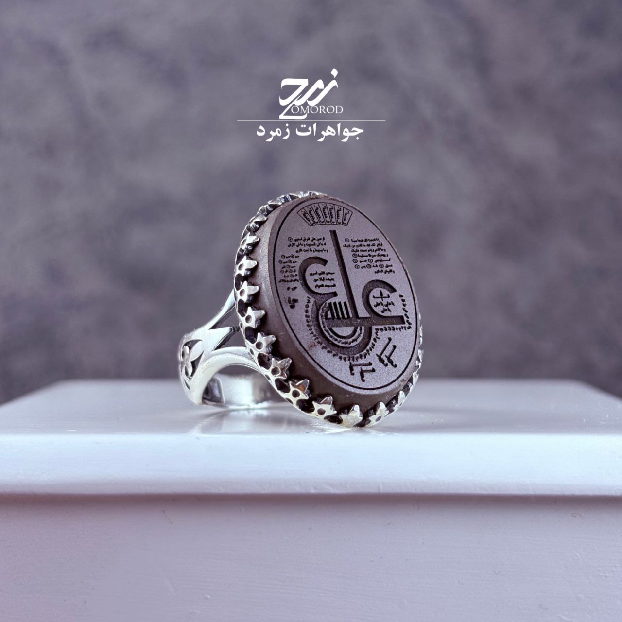 انگشتر نقره مردانه حدید سماقی حکاکی لیزر عین علی