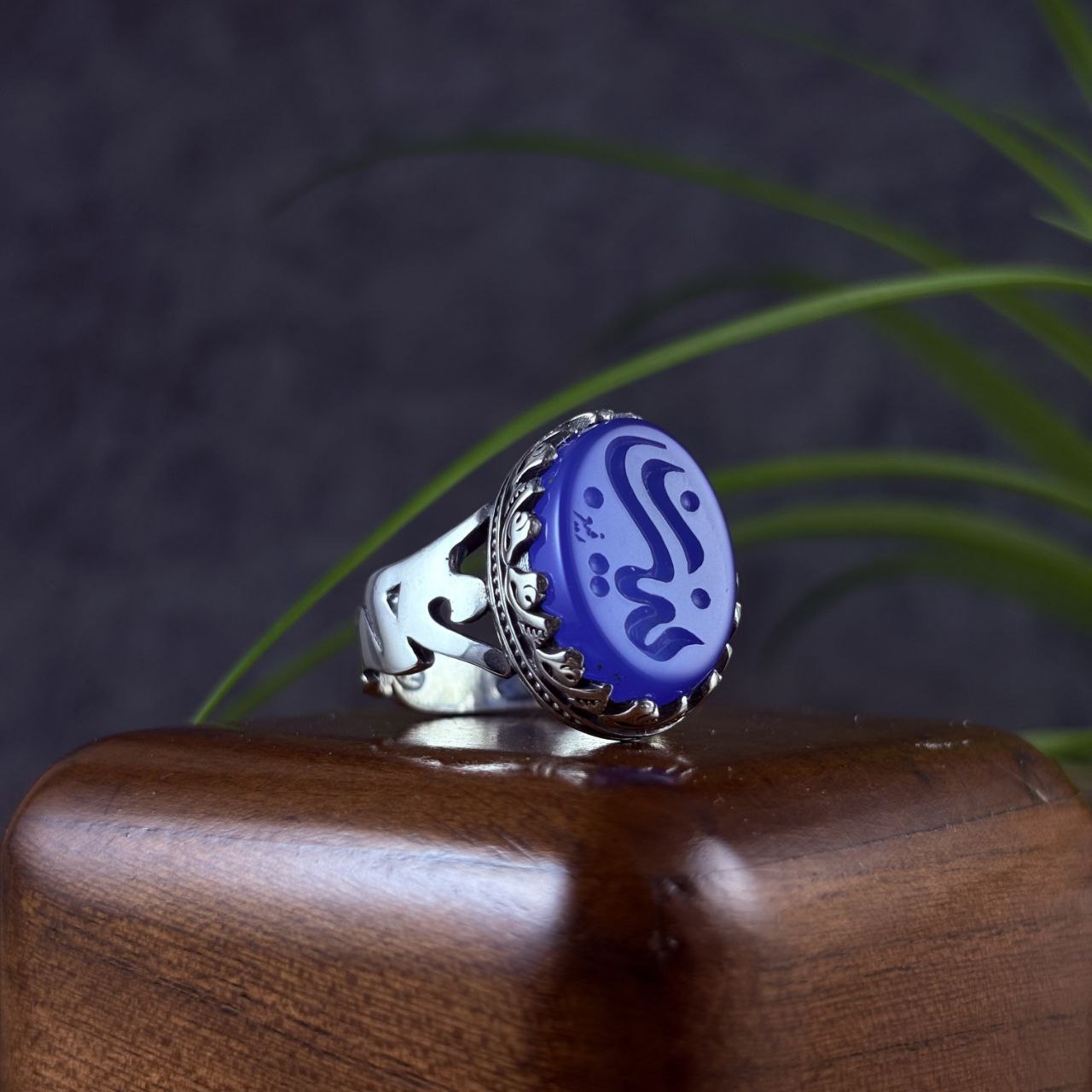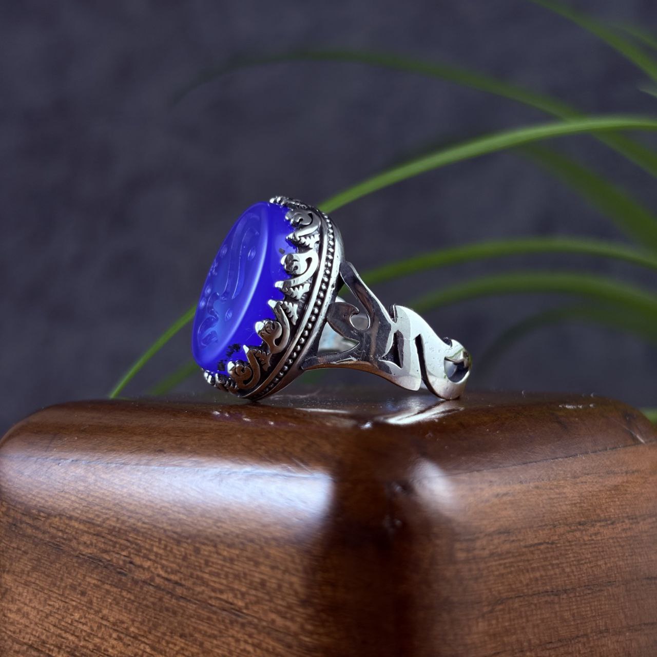 انگشتر نقره مردانه عقیق آبی حکاکی و ان یکاد
