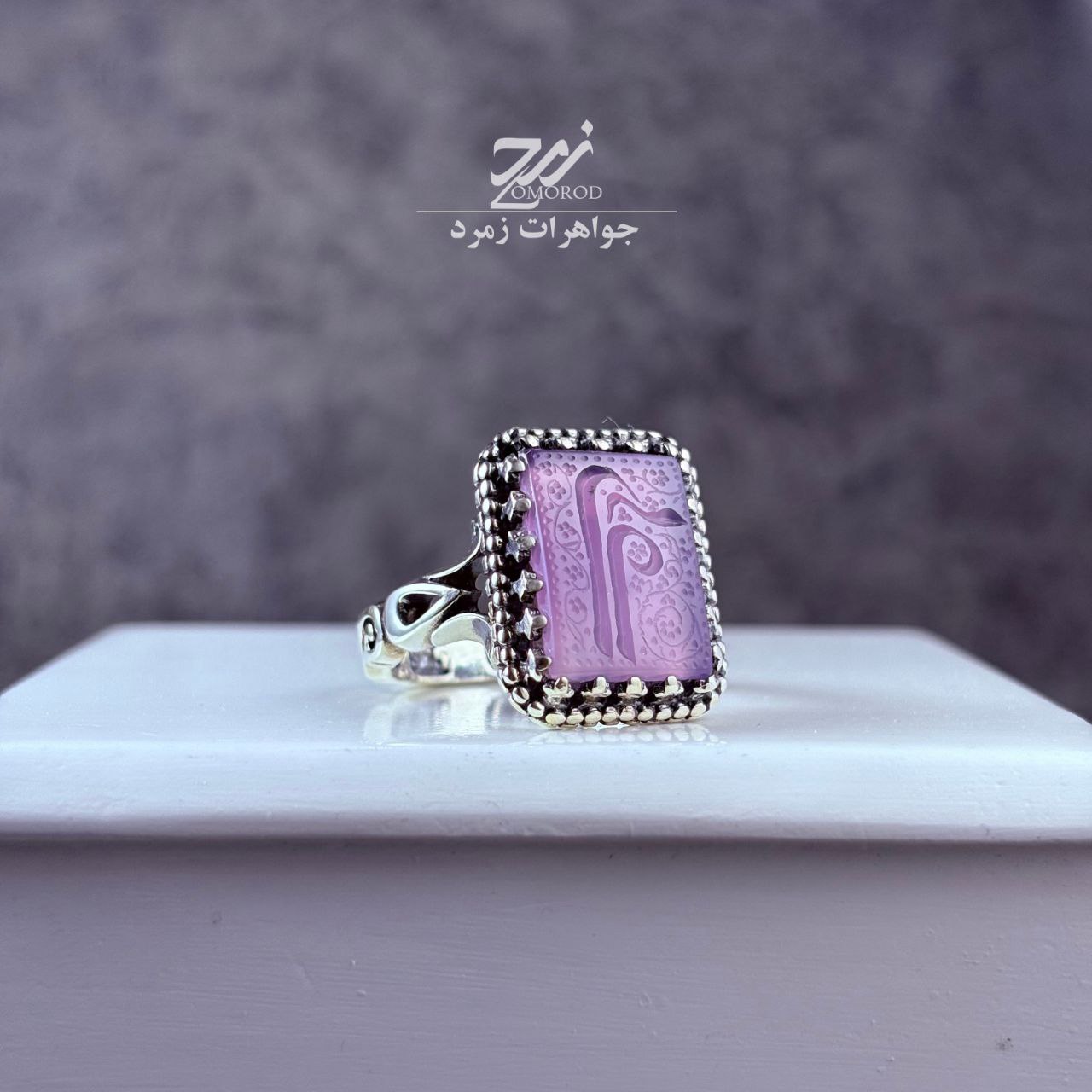 انگشتر نقره زنانه عقیق سرخ دورنگ حکاکی یا رقیه