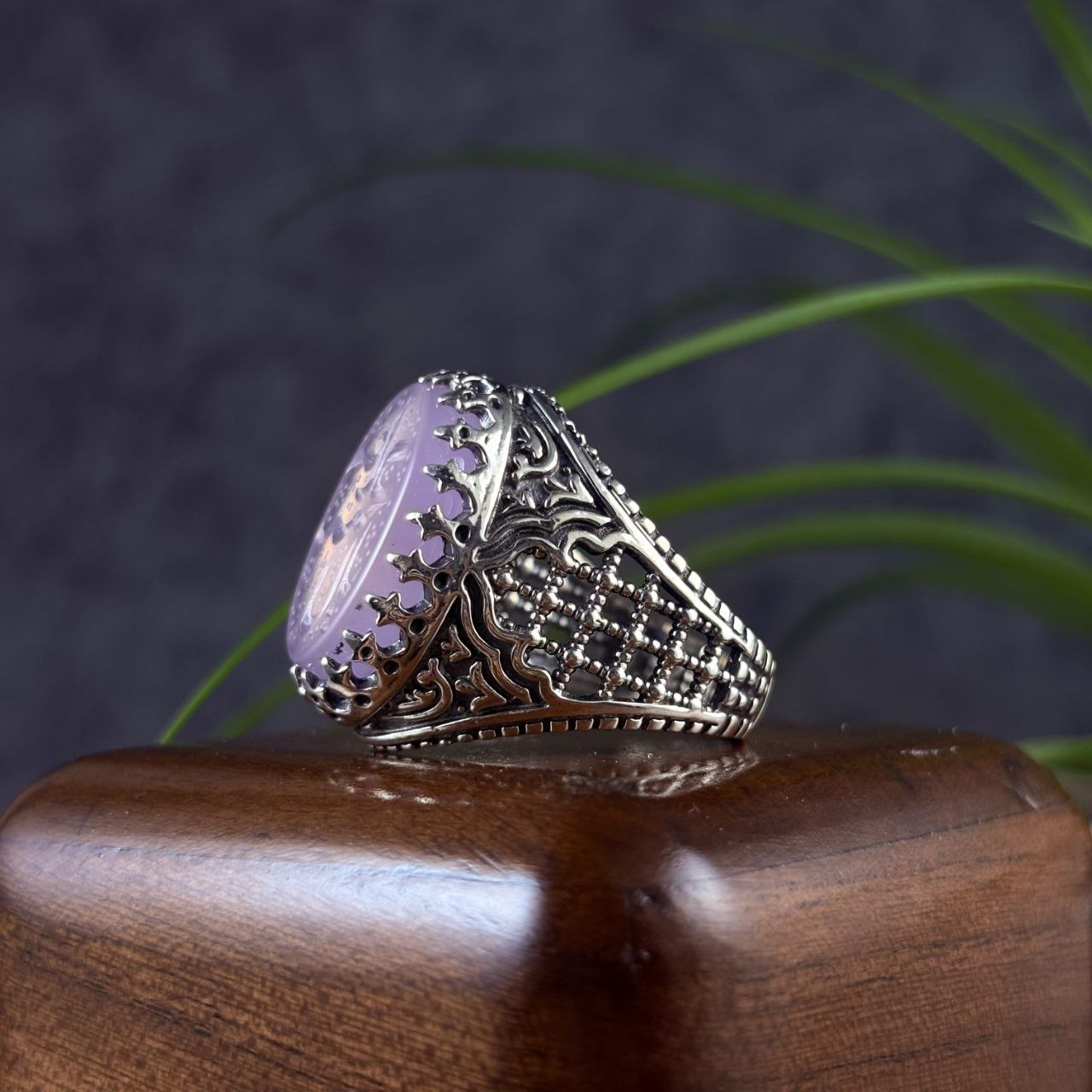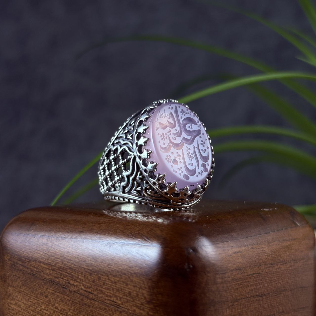 انگشتر نقره مردانه عقیق سوسنی حکاکی یا اباعبدالله