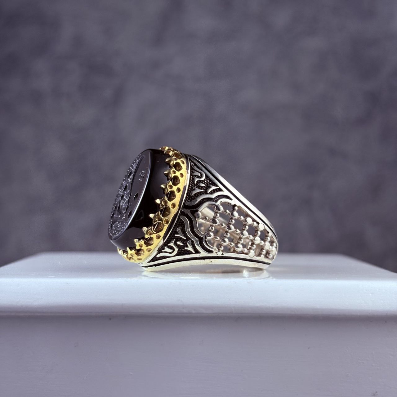انگشتر نقره مردانه عقیق مشکی حکاکی یا زینب