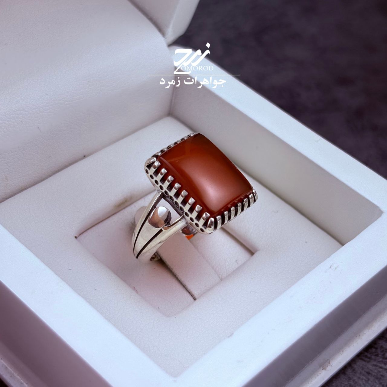 انگشتر نقره مردانه عقیق خراسان حکاکی لیزر حرز امام جواد (ع)
