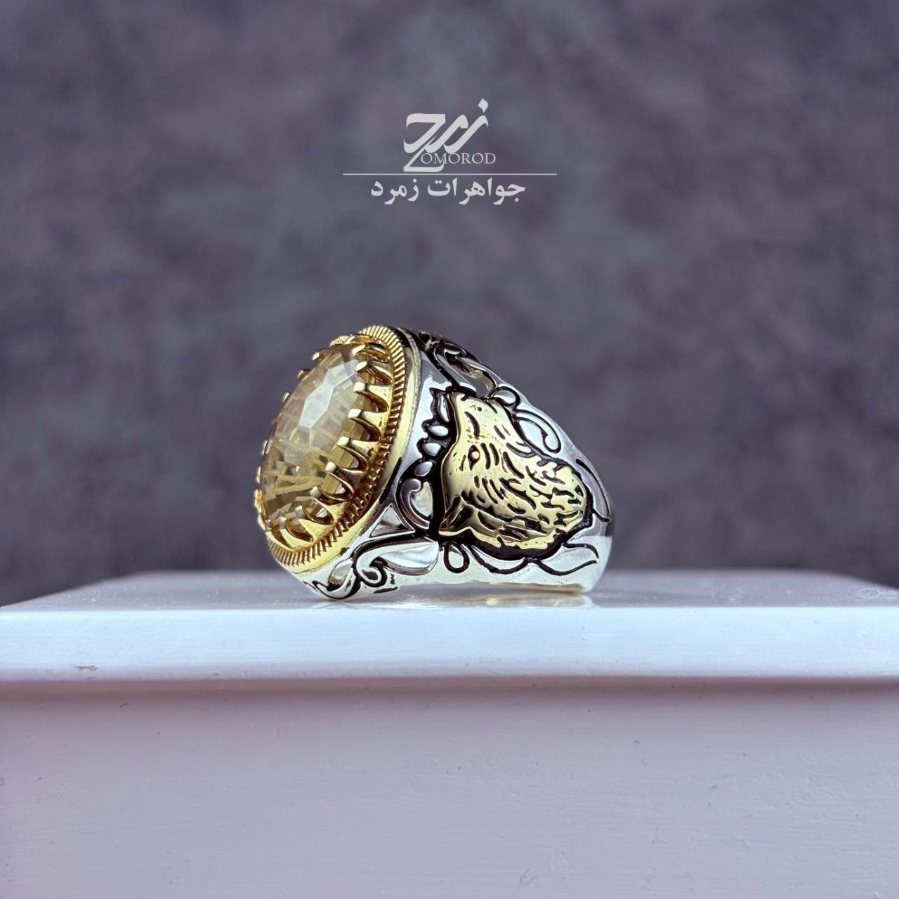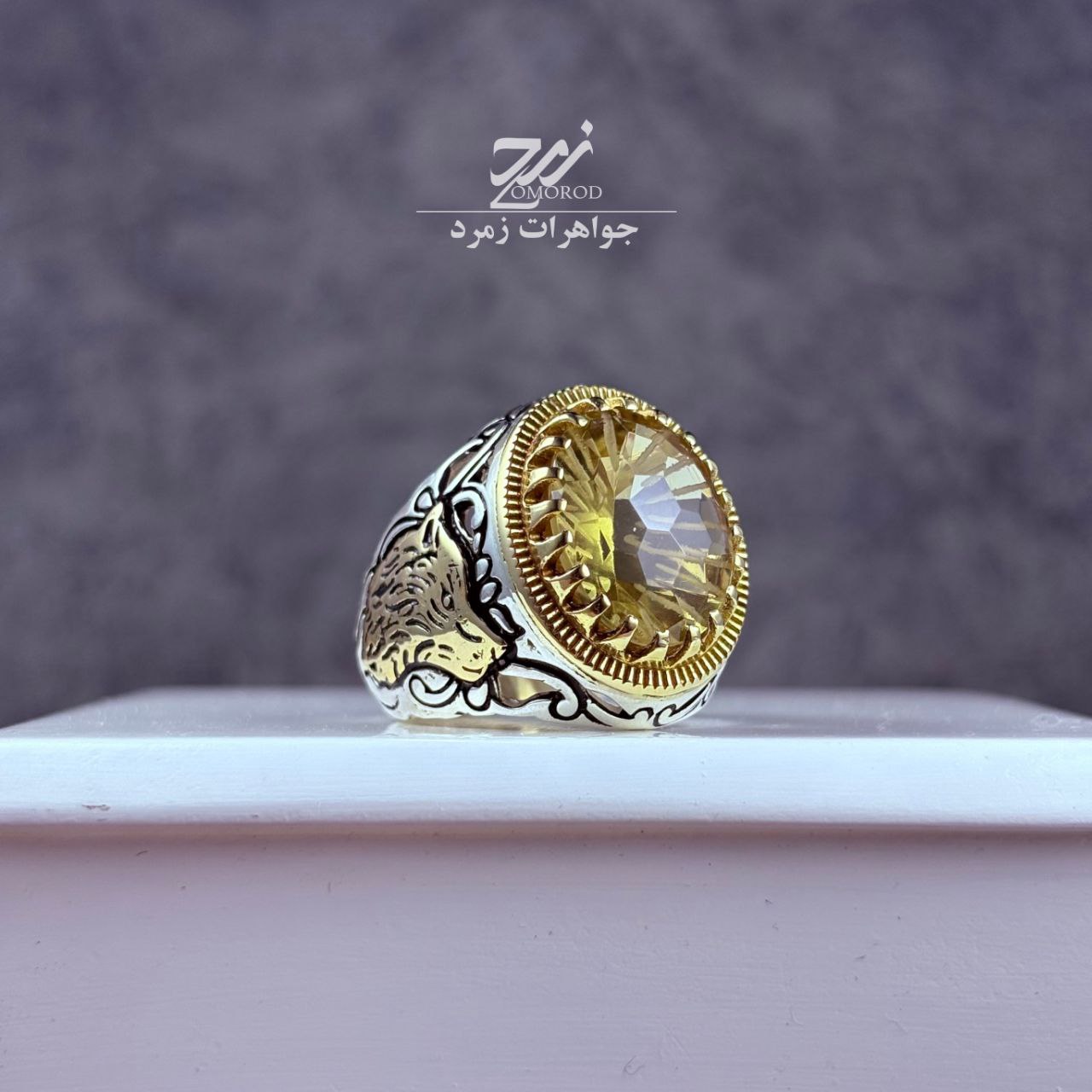 انگشتر نقره مردانه کوارتز لیمویی