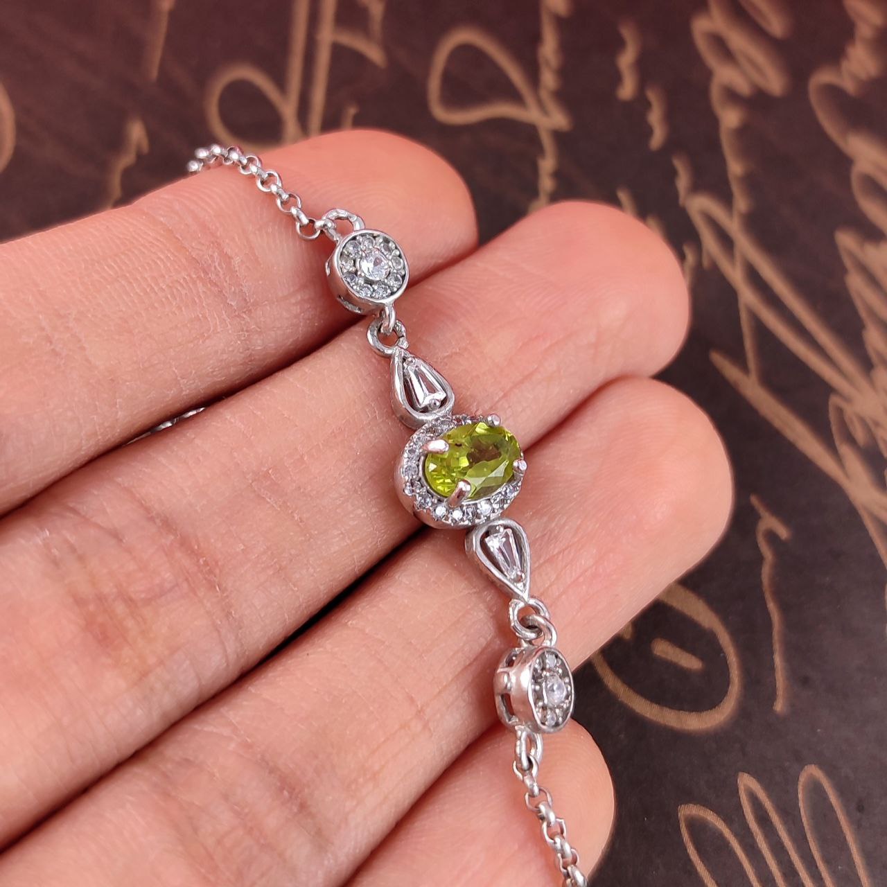 دستبند زنانه نقره جواهری زبرجد