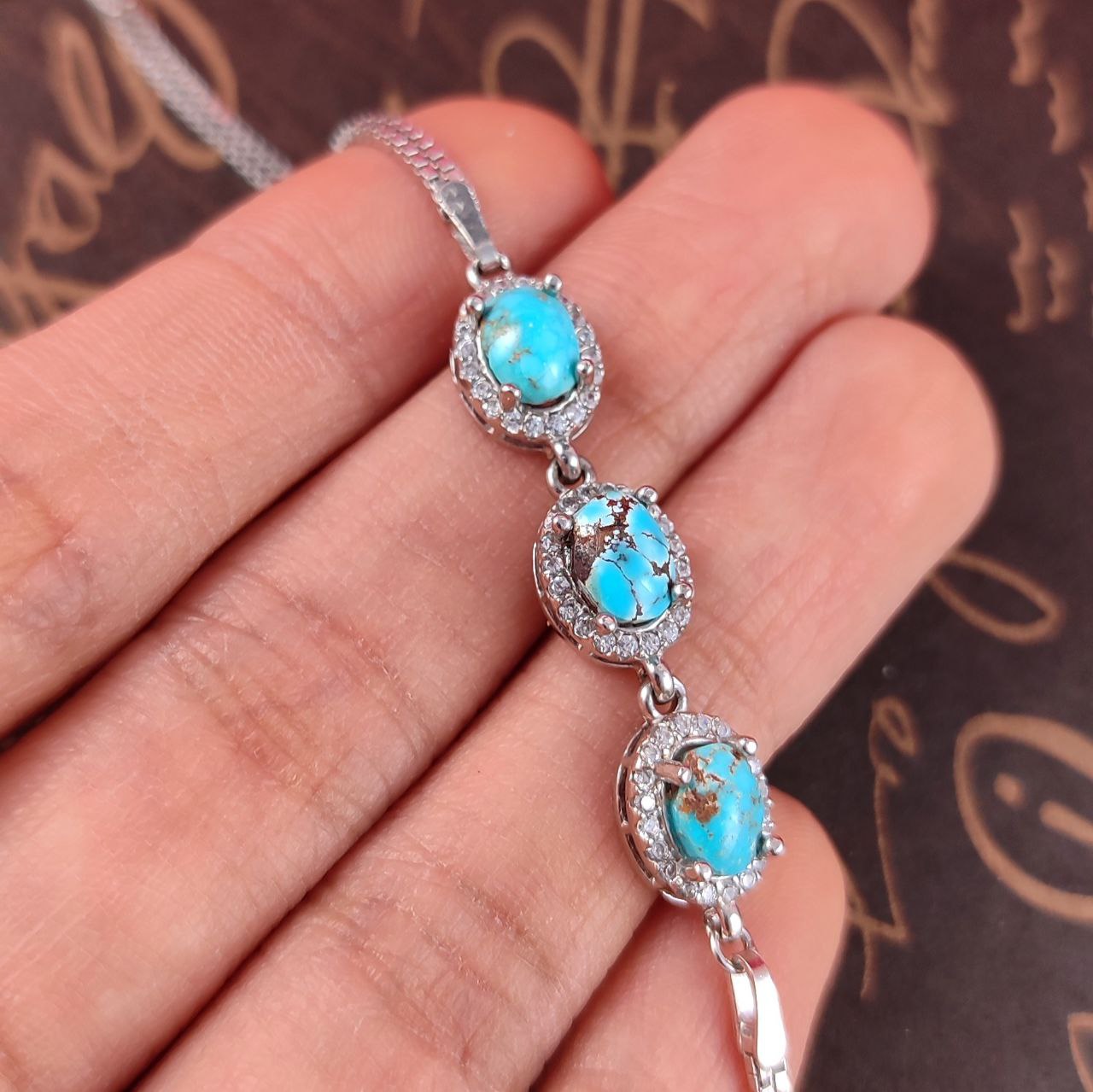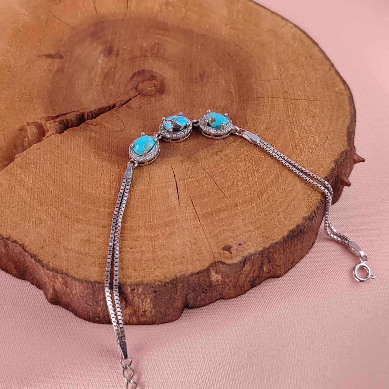 دستبند زنانه نقره جواهری فیروزه نیشابور