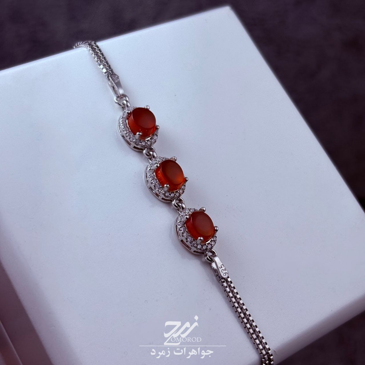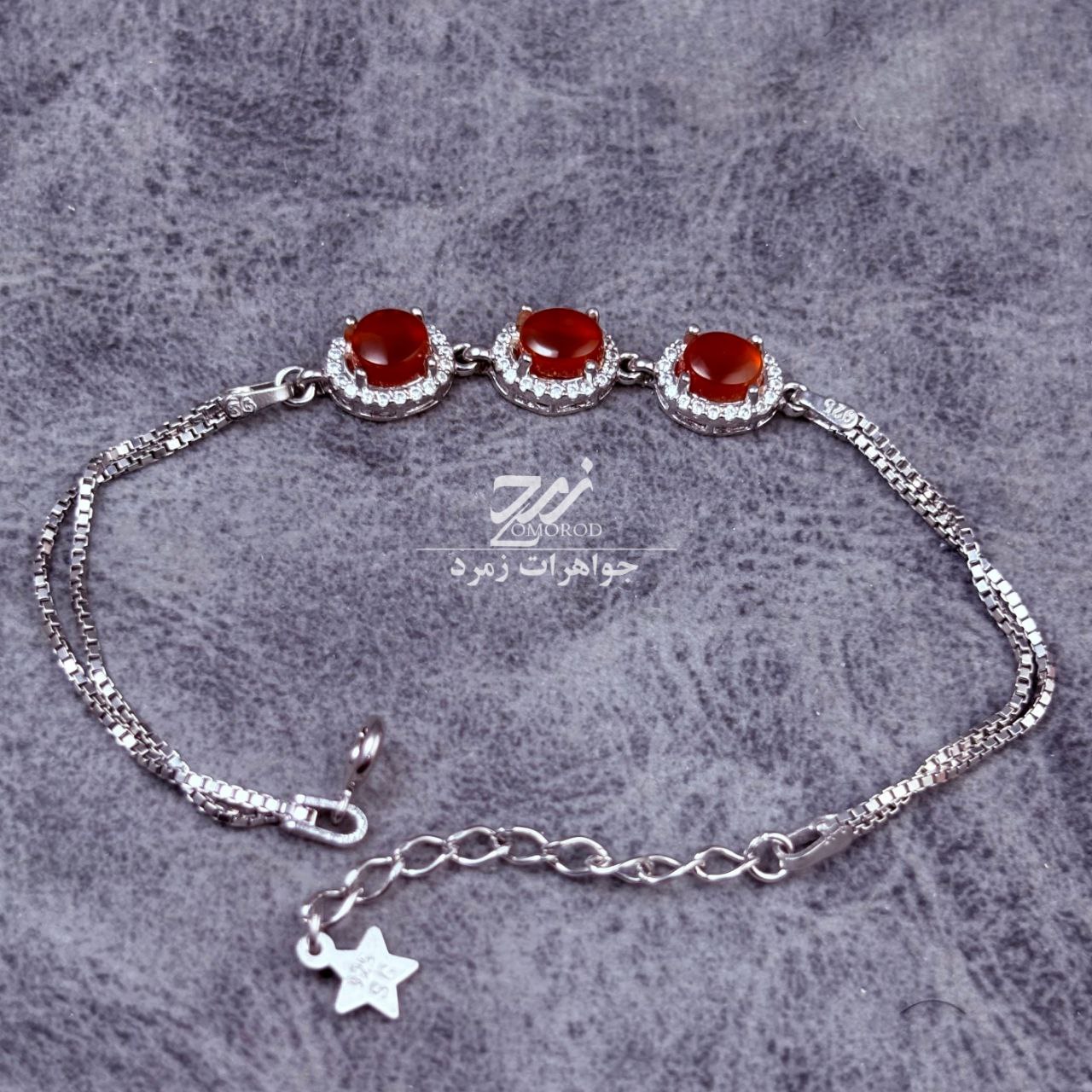 دستبند نقره زنانه جواهری عقیق یمنی سرخ
