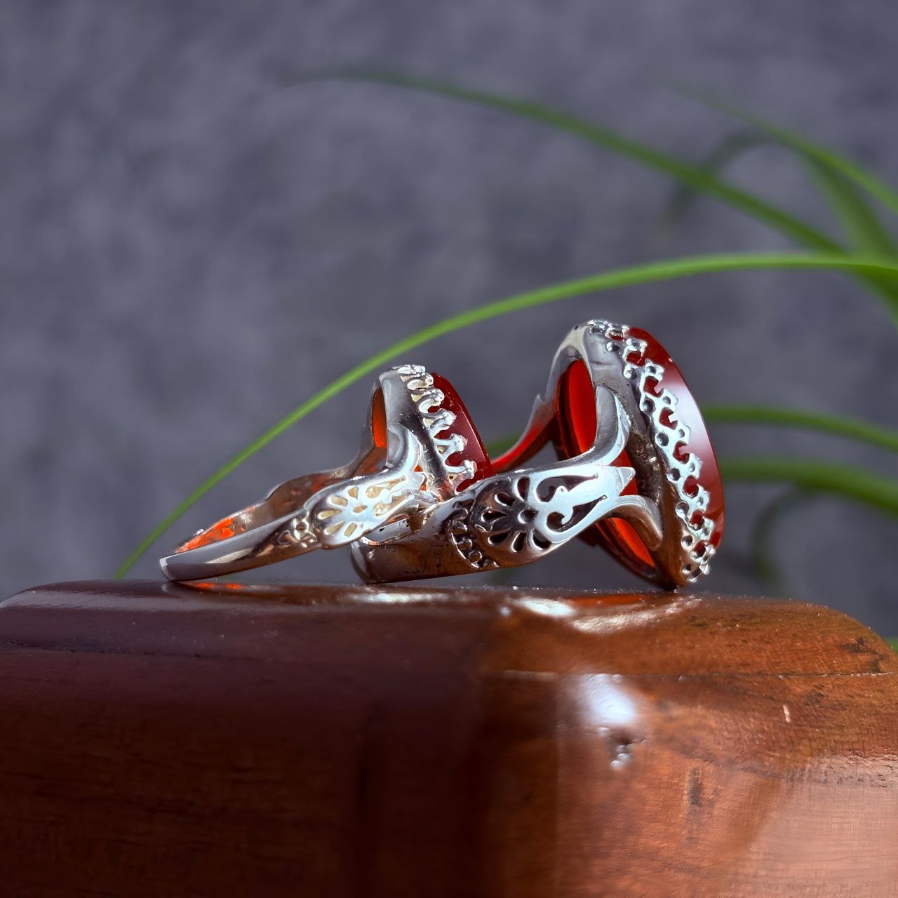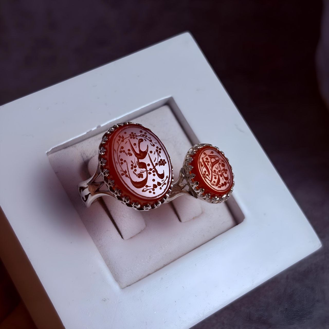 ست انگشتر زنانه مردانه عقیق سرخ حکاکی یا علی یا زهرا