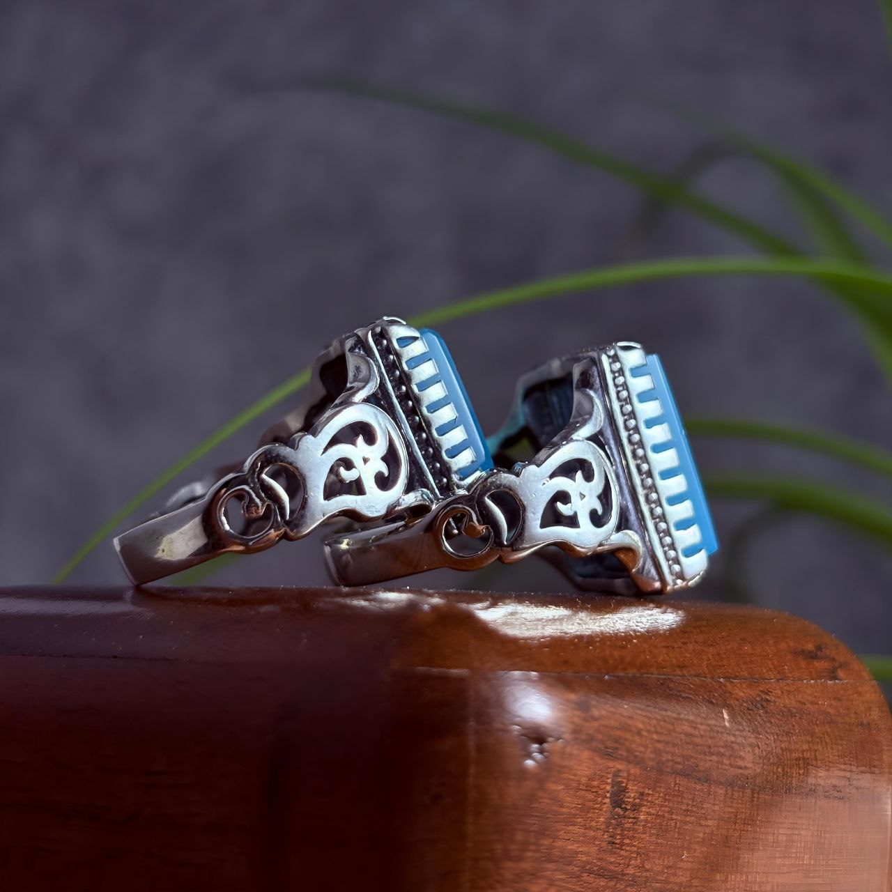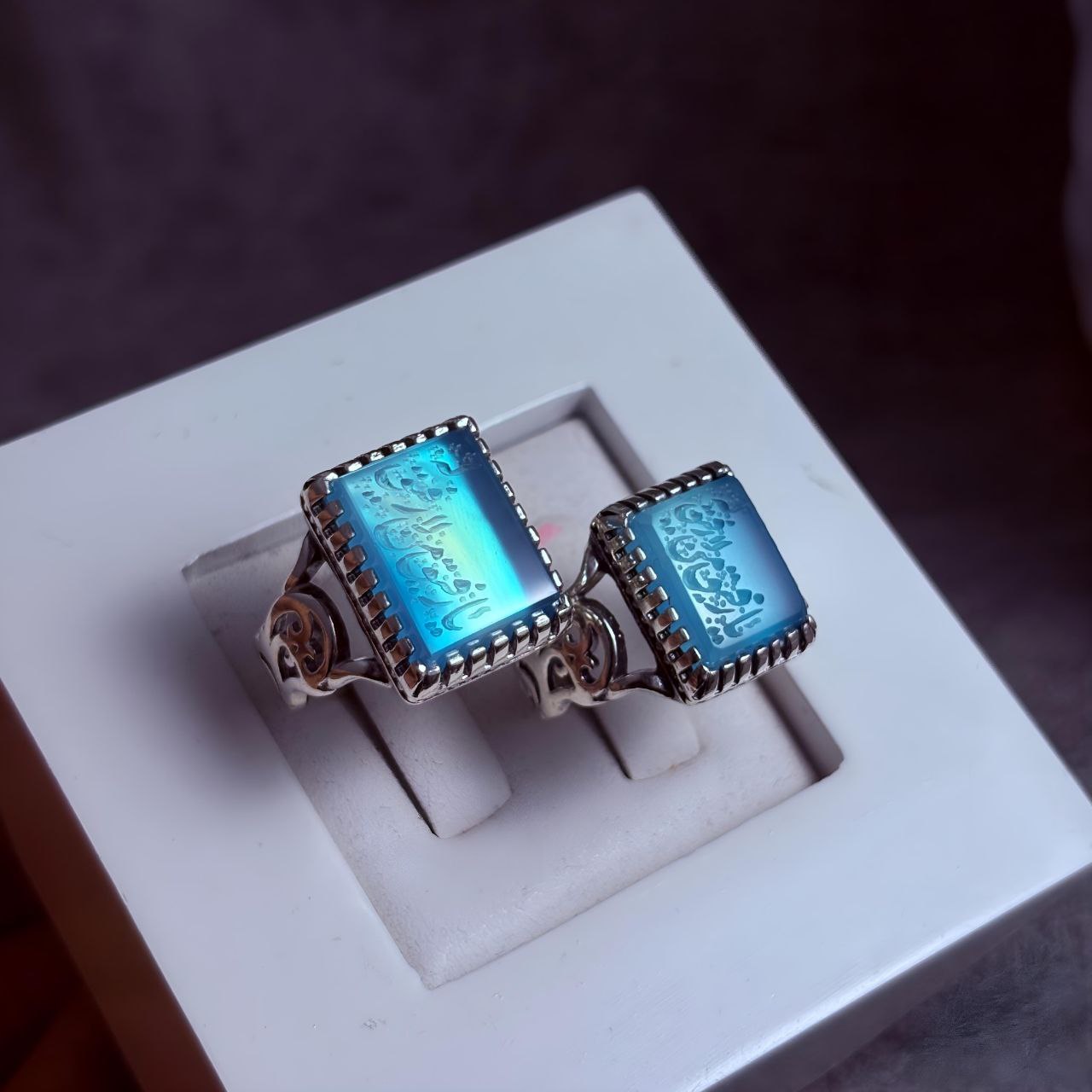 ست انگشتر عقیق آبی رکاب رهبری حکاکی یا رفیق من لا رفیق له