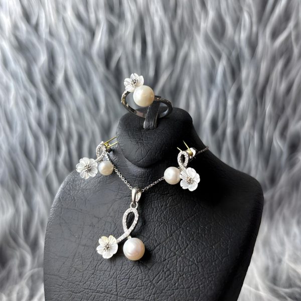 نیمست نقره زنانه جواهری صدف و مروارید اصل پرورشی